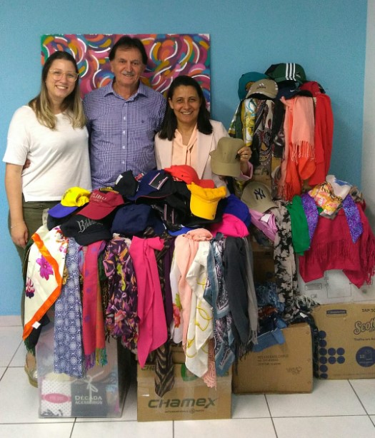 Foram arrecadados pelo Conselho 391 lenços, 541 bonés, 16 batons e 2 perucas. O conselheiro e integrante da Comissão de Responsabilidade Social e Inclusão de Cidadania Fiscal do CRCSP Mariano Amádio e a coordenadora da Comissão CRCSP Mulher, Inez Justina dos Santos, realizaram a entrega das doações.